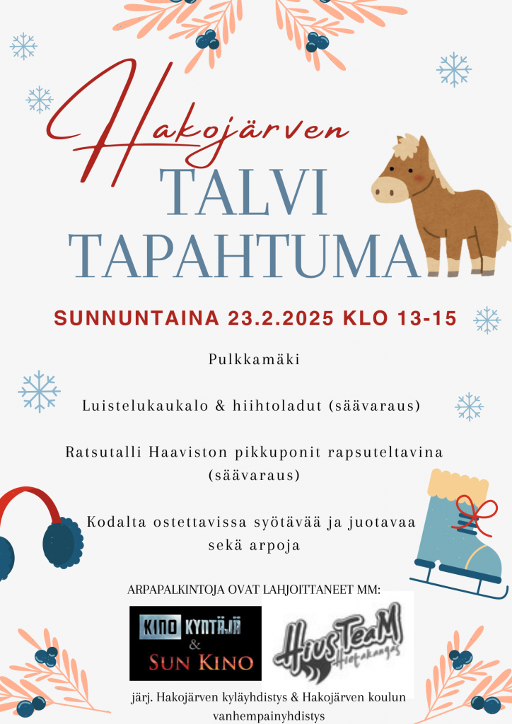 Hakojärven Talvitapahtuma 23.2.2025 klo 13 – 15by Hakojärven kyläsivuton Posted on 10.2.202510.2.2025